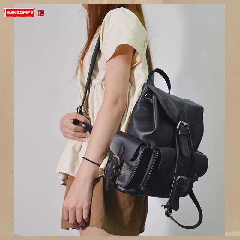 Good Product 2019 Genuine Leather women backpack female casual retro crazy horse skin thick leather suede leathe